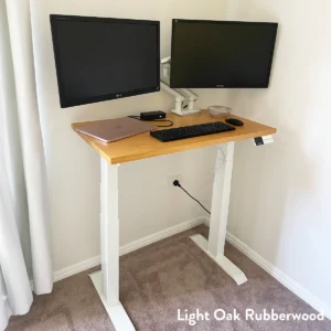 Like all our dual desky desks, this small standing desk features a sturdy frame and 3-stage telescopic legs, ensuring unmatched stability. Despite its compact design, the desk boasts an impressive lifting capacity of 140kg, allowing it to fit seamlessly into even the tightest of spaces. Crafted from premium rubberwood, it exudes a natural and elegant aesthetic, elevating your workspace.