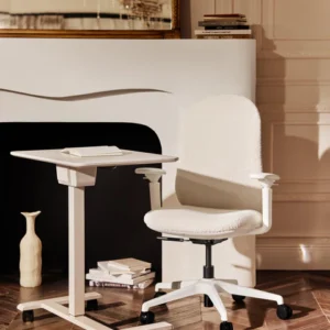 Crafted petite Mochi Chair individuals and compact spaces, the Mochi ergonomic chair offers the perfect blend of space efficiency and ergonomic comfort, making it an ideal choice for your workstation or makeup station.